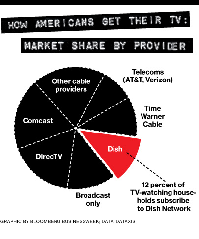 “We’re a one-trick pony,” Ergen has said of Dish, which has a sole product: satellite TV. In a November earnings call, Ergen talked about how his five kids—most of whom don’t even have cable subscriptions—think he’s “crazy” to be in the pay-TV business. To address that, Ergen has spent nearly $3 billion in the past two years buying wireless spectrum from bankrupt companies and just received word of a favorable Federal Communications Commission decision that may allow him to deliver video to tablets and cell phones. He’s also made it clear that he’d like to try again to merge with DirecTV and have his own mobile network to compete with telecom giants such as AT&T and Verizon, though a succession of recent wireless industry consolidations has possibly imperiled those plans.