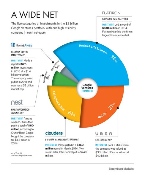 With Google’s money and clout behind him, Maris has a huge amount of freedom. He can, and does, go after Silicon Valley’s most-sought-after startups. Uber, Nest, and Cloudera are among the firm’s big wins. Maris doesn’t intend to stop pursuing these kinds of deals. But he has other ambitions, too. “There are plenty of people, including us, that want to invest in consumer Internet, but we can do more than that,” he says. He now has 36 percent of the fund’s assets invested in life sciences, up from 6 percent in 2013.