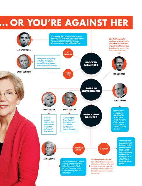 Starting with December’s showdown with Citi, Warren, 65, has been on a tear, Bloomberg Markets reports in its June 2015 issue. Only two years into her term as senator, she has the kind of clout and attention it takes most lawmakers decades—or a presidential run—to build. Her stance as watchdog over the financial industry helped her win a Senate seat. Now, she’s harnessing that into something bigger and more powerful.