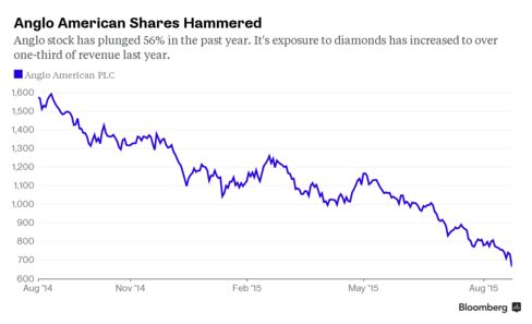 The turmoil in the $80 billion diamond industry has added to the woes of Anglo American, whose shares on Monday tumbled to a 15-year low amid a rout in copper, coal and iron-ore prices. Diamonds accounted for about a quarter of the company’s sales last year.