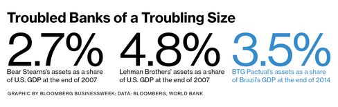 BTG’s collapse won’t cause Brazil’s capital markets to seize up as Lehman Brothers’ failure did in the U.S. in 2008. Yet having one of the country’s most prominent financiers behind bars is a body blow to the confidence of investors at a time when Brazil needs their cash. “It very much gives you the impression that the corruption scheme is so widespread that it induces a kind of counterparty risk,” says Monica de Bolle, a former International Monetary Fund economist. “You enter into transactions with people in Brazil without knowing whether or not they might be implicated in something.” The result: “Nothing gets done. There’s no business,” she says.