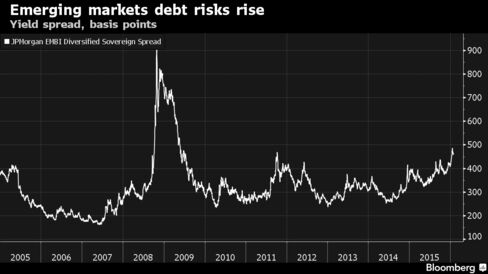 The market sees Venezuela, one of the world’s top 10 oil exporters, as a likely default candidate. Its bonds maturing in 2022 trade at 38 cents on the dollar and yield more than 40 percent. In 2013, the yield was below 10 percent.