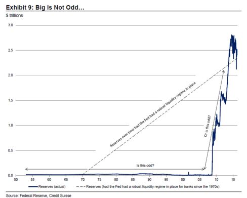 In some respects, a big central bank balance sheet may represent a return to normality. Had regulators asked banks to hold an extra $50 billion in reserves every year from 1971 onwards to coincide with the explosion in wholesale (repo) funding markets, Pozsar says, the Fed's balance sheet would look roughly like it does now.