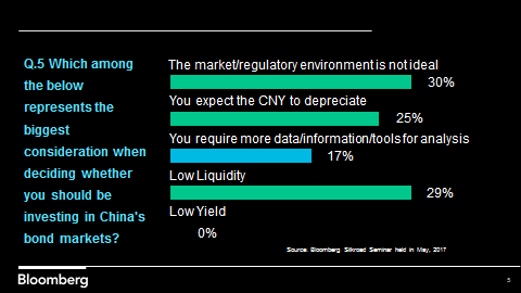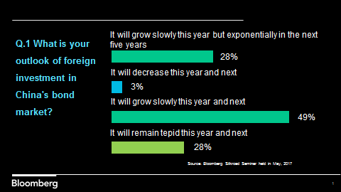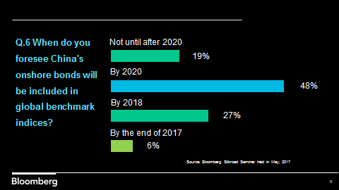 - Almost half (48%) polled foresee China’s onshore bonds to be included in global benchmark indices by 2020.