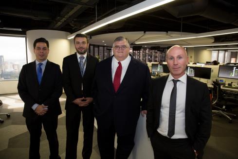 (Left to right) Javier Rojas, head of Mexico sales, Carlos Manuel Rodriguez, Bloomberg News, Carstens and Luca Marchi, External Relations.