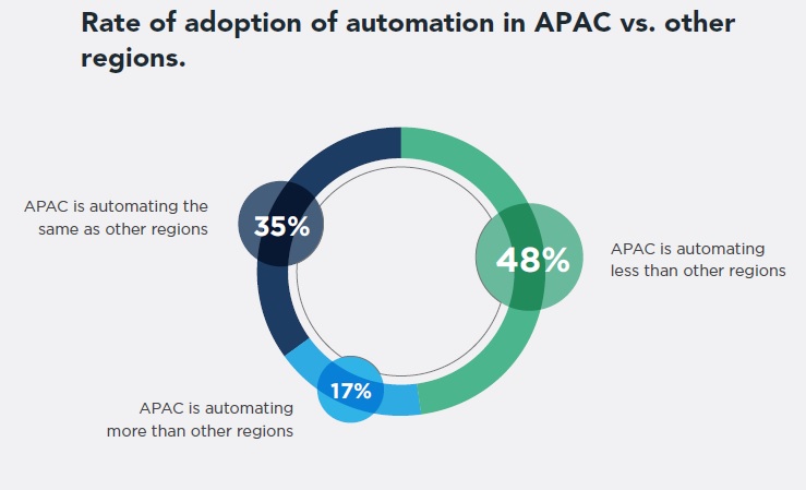 In Asia Pacific, the markets deemed most ripe for electronification in the survey include China, Korea, Indonesia, Japan, Australia, Singapore, Hong Kong, India, Malaysia, and Thailand. Of the respondents, 20% favour Australia the most in this regard, closely followed by China at 19%. Hong Kong (15%), Singapore (14%), and India (13%) are also high on the regional list. To compete effectively in global markets, adoption of technology is vital where FX, equity, and fixed income trading have all become extremely competitive. However, the survey did indicate a slow pace of technology adoption in Asia Pacific, with 47% of the respondents feeling that compared to their peers in the US, Europe, the Middle East, and Africa, APAC is automating less than other regions.