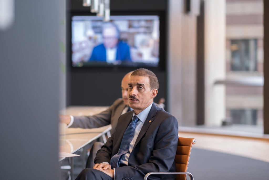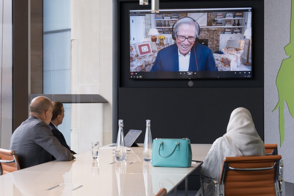 The IsDB delegation meets virtually with Bloomberg Chairman, Peter T. Grauer, during a visit to Bloomberg’s European headquarters in London.