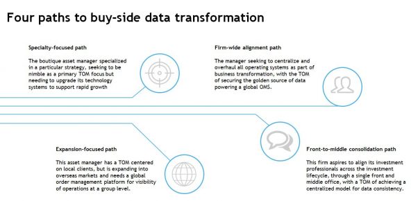 The white paper showcases key trends and challenges impacting the buy-side and important considerations to take to adopt data-driven operating models. Four different paths for managing data and technology transformation journeys are highlighted, to help buy-side leaders stay competitive and achieve their target operating models. The four paths are i) specialty-focused ii) firm-wide alignment iii) expansion-focused and iv) front-to-middle consolidation.
