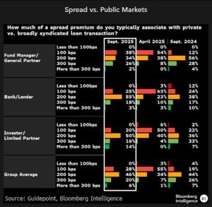 NEW YORK, OCTOBER 15, 2025 — A new survey from Bloomberg Intelligence (BI) finds that private credit could replace 15% of traditional fixed-income investment of BI’s current addressable fixed income market, up five percentage points from BI’s April 2025 survey conducted amid post-tariff volatility. The growth could be focused on replacement moving from public markets.