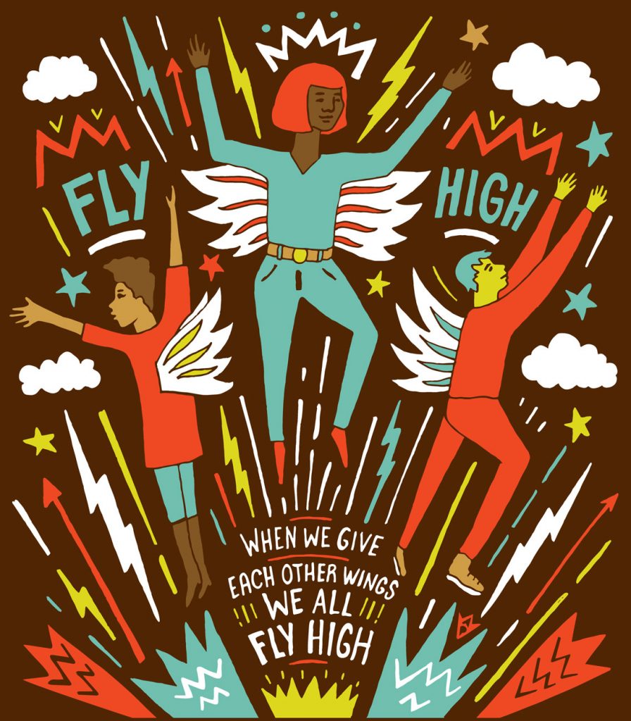 In the ‘Fly’ piece, Pippins is highlighting the importance of pulling each other up and remembering that when we are given opportunities we should offer the same to others.