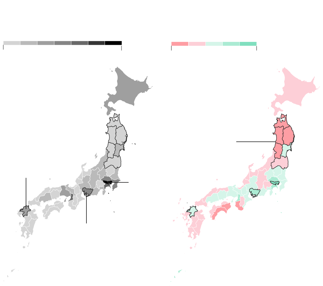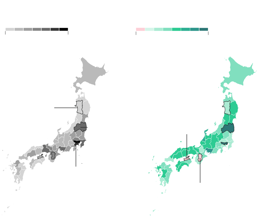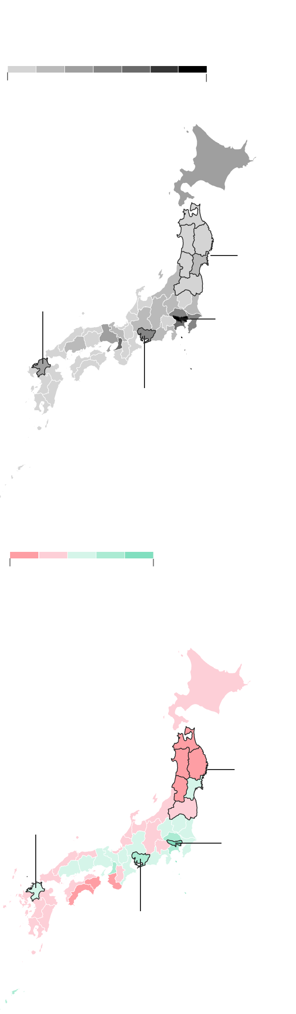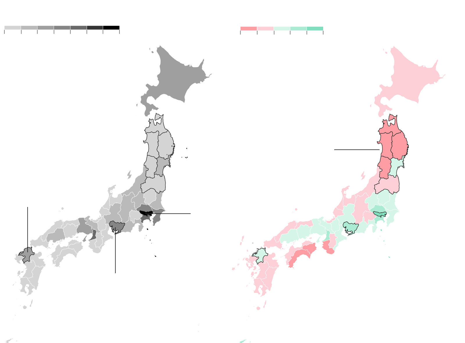 While Prime Minister Shinzo Abe is responding to the problems—officials this month are drawing up plans to help parents by making early childhood education free—the following visuals draw on tax and population data to illustrate how and where income has shifted across Japan under Abe’s watch.