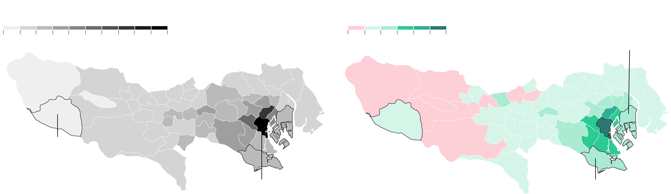Within Tokyo, the income disparity is getting worse, and it’s wider than the differences among individual prefectures.