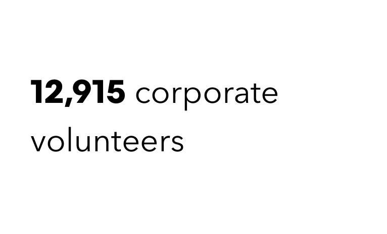 Bloomberg’s Corporate Philanthropy program harnesses the skills and resources of our employees to create lasting impact. In 2019, 12,915 employees took part in our Best of Bloomberg corporate volunteer program in 80 cities around the world.