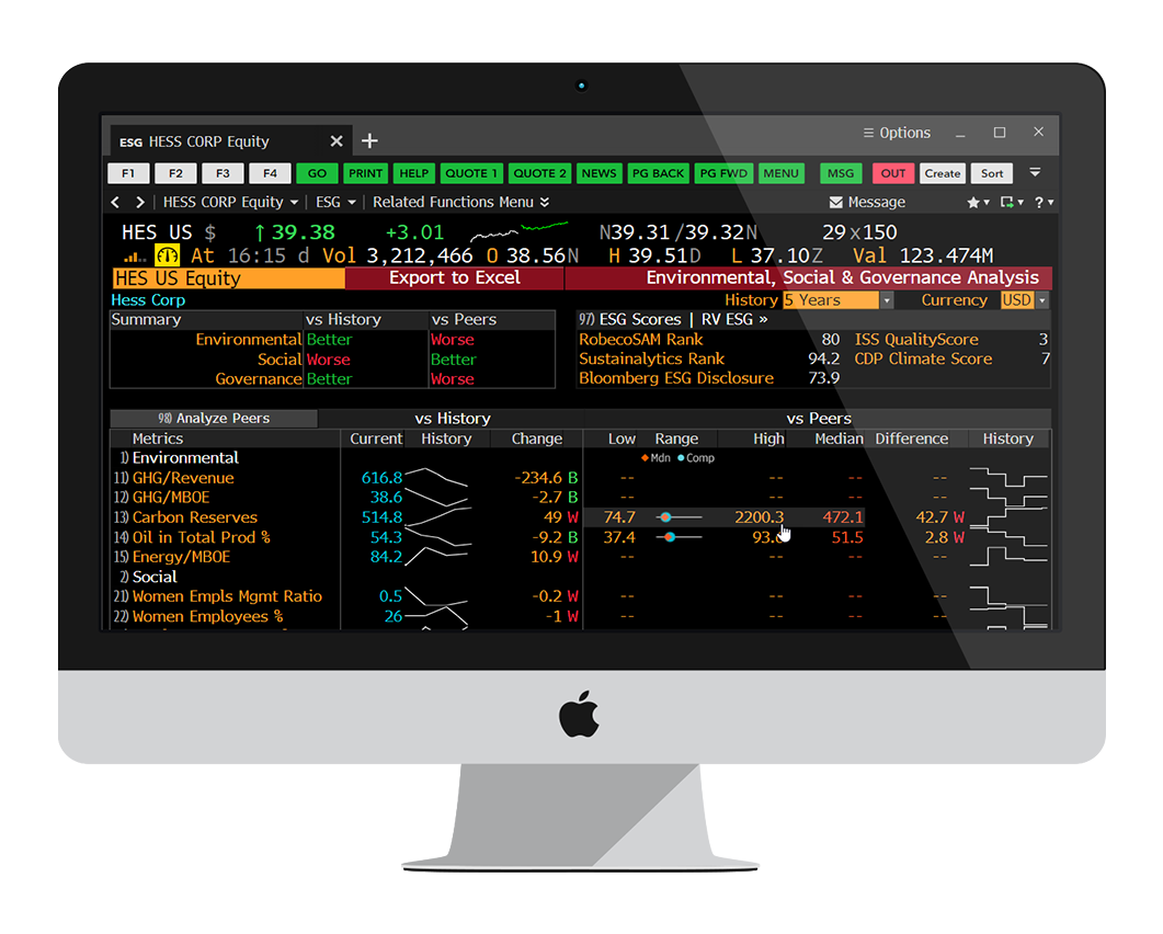 We deliver highly interconnected proprietary environmental, social and governance (ESG) products that leverage key Bloomberg areas of expertise across Financial Products, Global Data, Bloomberg Intelligence and BloombergNEF.