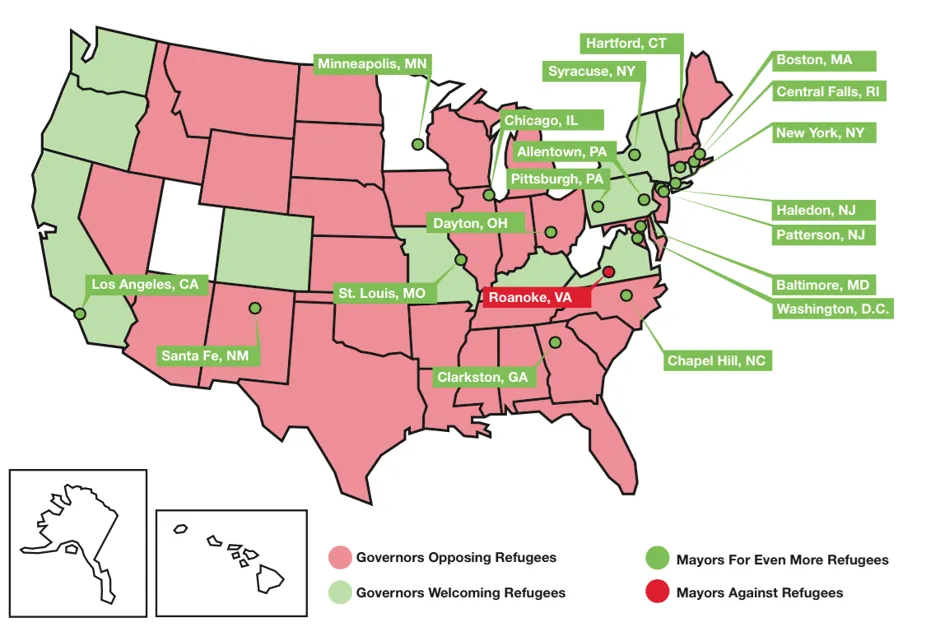 Your state might oppose Syrian refugee resettlement, but odds are your city feels the opposite.