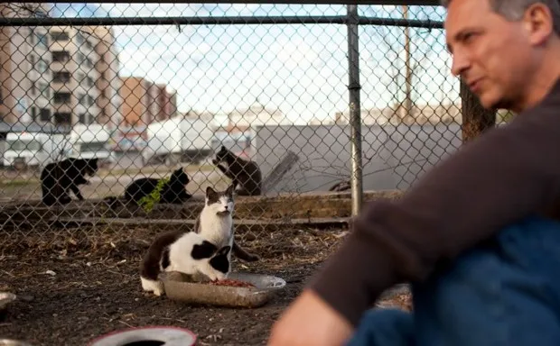 A former sanitation worker feeds dozens of cats near the borough’s industrial waterfront.
