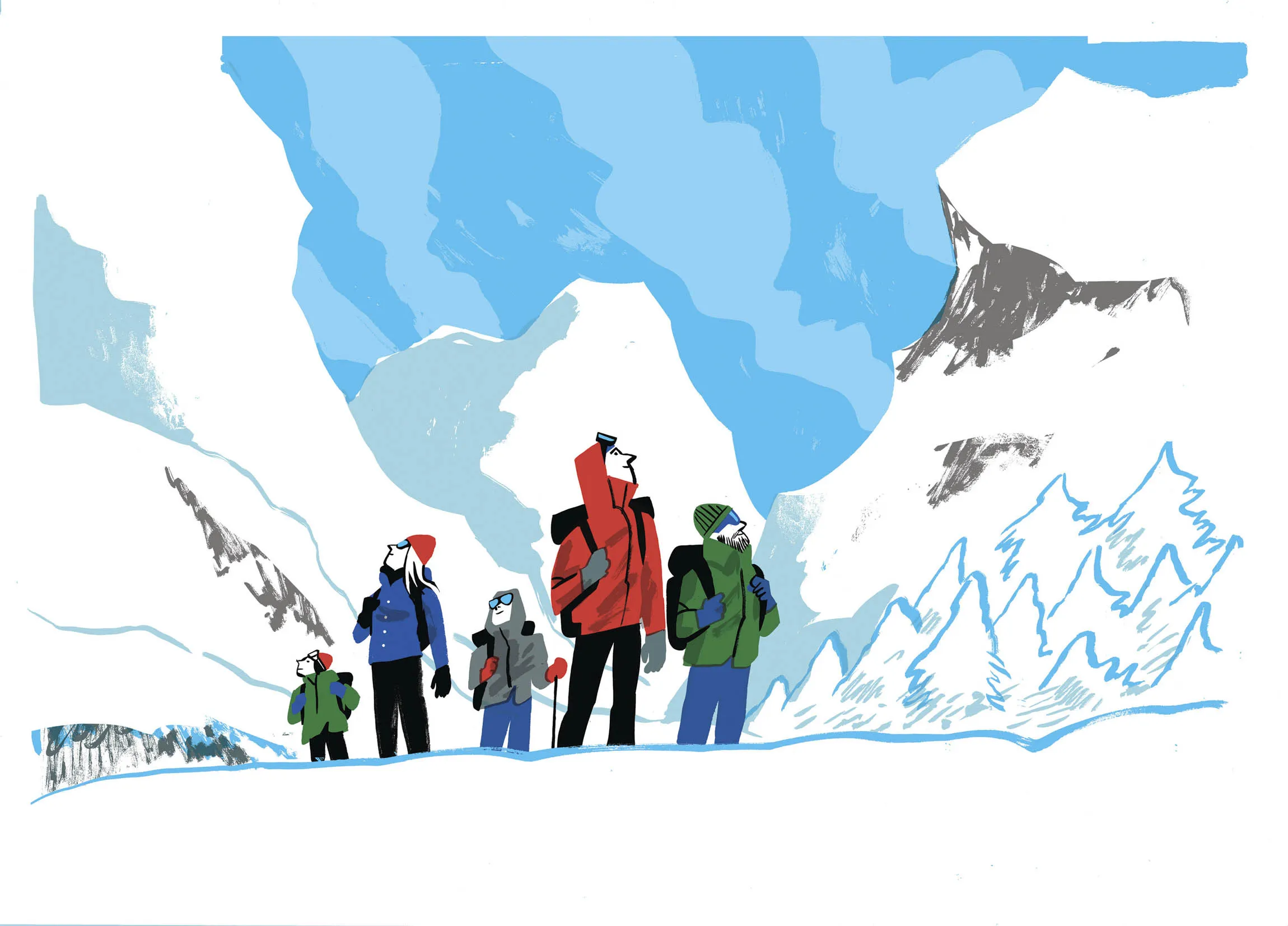 You’ll like Powder Matt—he’ll make sure of it. Even if you cringe at first. His motivational speeches can sound like something borrowed from an inspirational poster but delivered in the voice of a fiftysomething ski bum. One day, after a hike, over coffee at a long wooden table, he tells me about a childhood mentor who taught him how to ski. “I realized I can soar,” he recalls. “That person gave me the wings.” I would have scoffed at the sentimentality if his positivity weren’t just so darn charming.