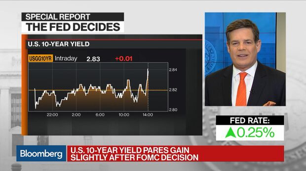 The S&P 500 Index dropped 1.5 percent after policy makers raised rates for the fourth time this year and lowered their forecast for hikes next year to two from three. Markets had been priced for just one. Treasury yields slid and the dollar erased losses as Powell said the Fed’s balance sheet normalization would continue “on automatic pilot.”