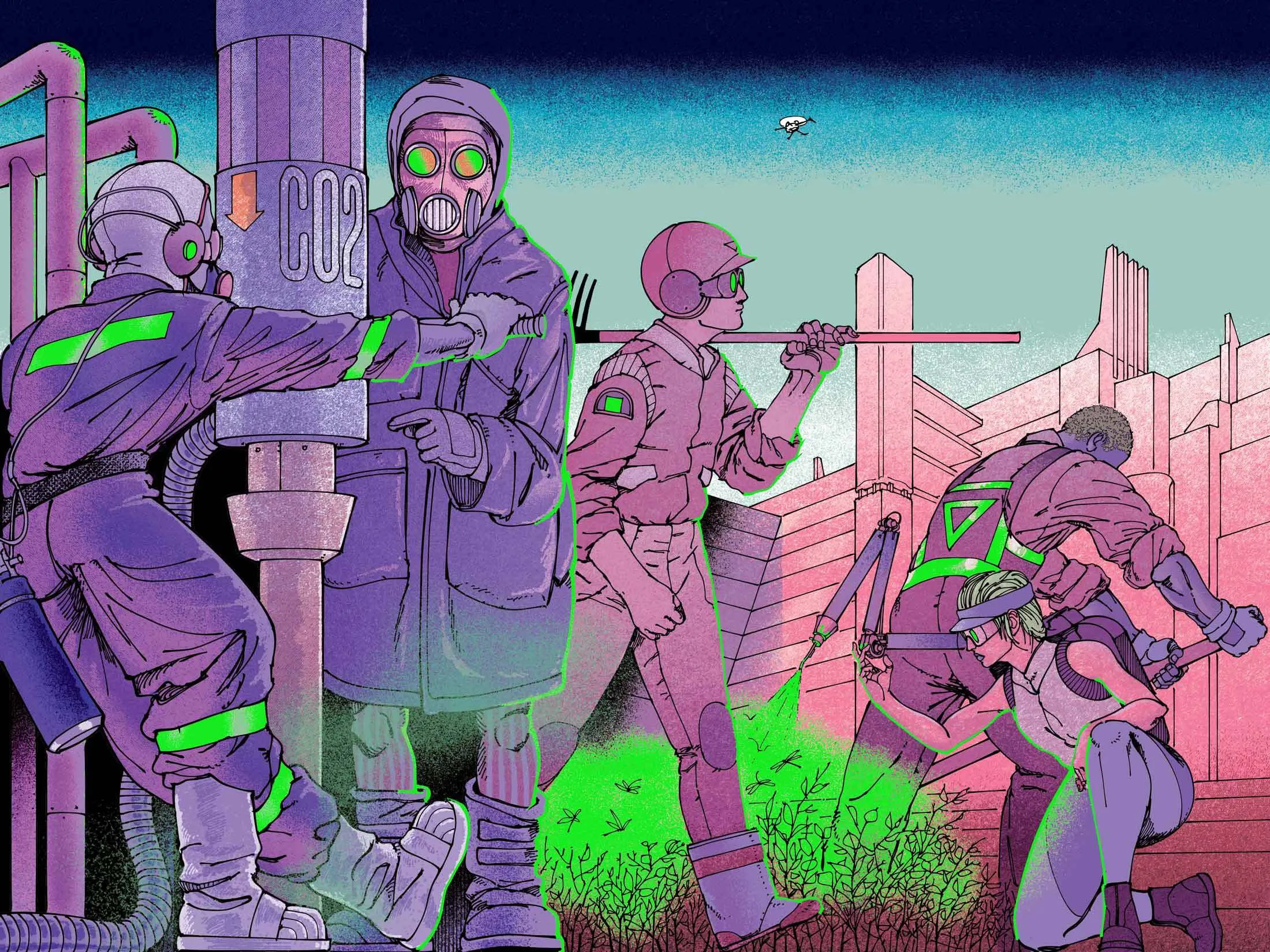 You go to the local job center, which tells you the U.S. Department of Energy is sponsoring a public-private company to build direct-air-capture factories. Now instead of pumping a source of carbon dioxide out of the ground, you get to suck CO₂ out of the atmosphere and inject it back underground. You already know how to work with pumps and pipes from your old job, and though CO₂ removal is a new industry, it’s scaling up fast. And you have a real right to work, as stated in the United Nations Universal Declaration of Human Rights—and, ever since passage of the Great Pandemic Recovery Act, as stated in federal law, too. A good job is a good job.