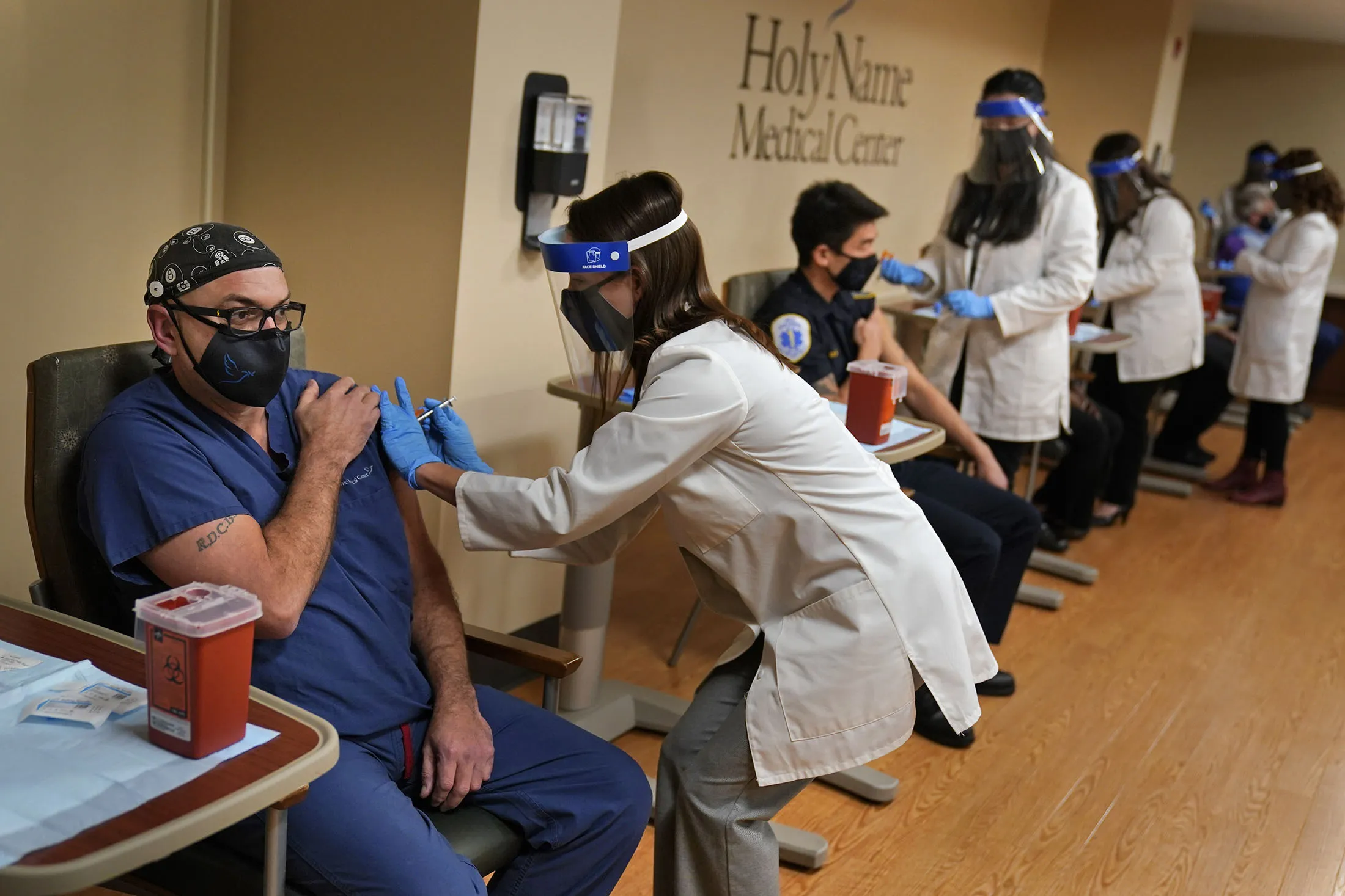 First-in-Line Health Workers Show Off Shots to Push Safety