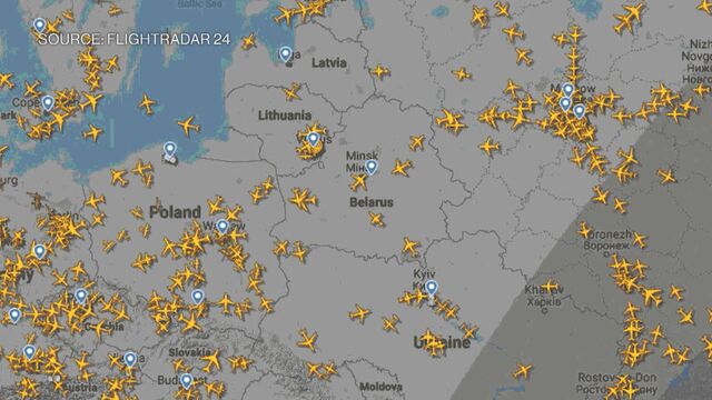 WATCH: Images from FlightRadar show that airlines are starting to avoid Belarus.