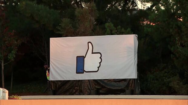 The well-known “like” sign outside its offices in Menlo Park, California, was covered in a temporary canvas that also had the thumbs-up symbol. At around 7 a.m. local time, a security barrier was added and guards patrolled the area around it.