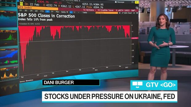 That’s the plight facing strategists who are now forced to price in escalating tensions between Russia and Ukraine on top of rising oil, surging inflation and a Federal Reserve that’s on the verge of raising interest rates. In the face of the escalating geopolitical tensions, the S&P 500 fell for a third straight day on Tuesday. It’s now down more than 10% from its record high at the start of the year, signaling a technical correction.