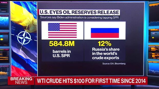 Futures in New York closed under $93 a barrel and Brent slipped under $100 a barrel after earlier soaring to as high as $105.79 in the immediate aftermath of Russia’s invasion of Ukraine. Biden sanctioned Russia’s five major banks but said that energy supplies will be omitted from sanctions at this time. Biden also floated the potential for more oil barrels to be released from strategic reserves in coordination with other nations.