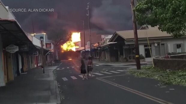 - Winds driven by distant hurricane fan flames burning Lahaina