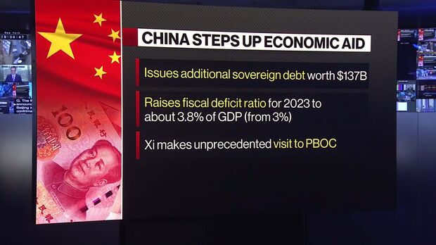 Chinese President Xi Jinping stepped up support for the world’s second-biggest economy, issuing additional sovereign debt, raising the budget deficit ratio and even making an unprecedented visit to the central bank.