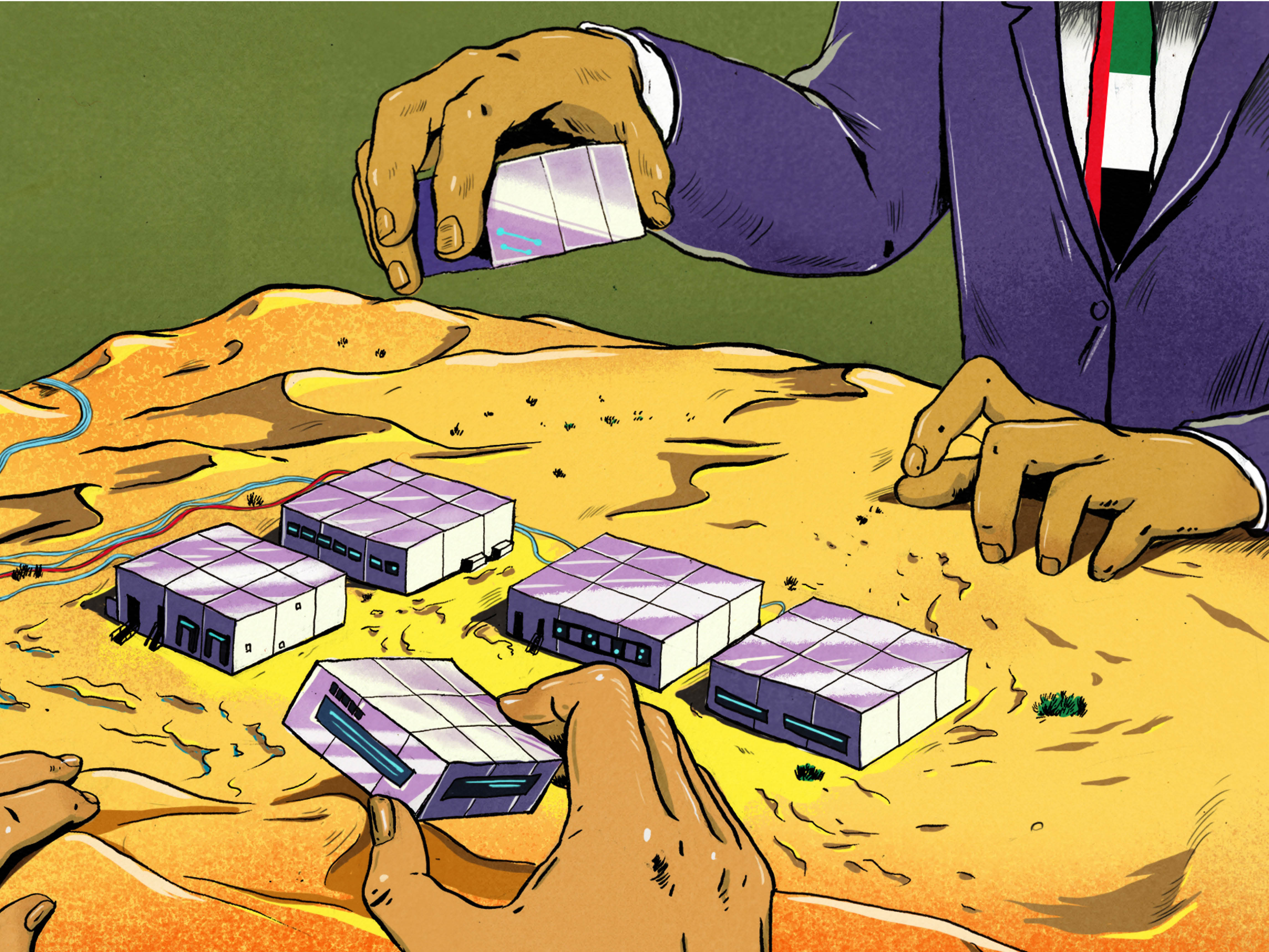 One of the best places to view the Gulf states’ unfolding rivalry over artificial intelligence is inside an unmarked building in an industrial park near a golf course on the outskirts of Dubai. The windowless facility is cool and extraordinarily clean. Upon entering, guests step onto sticky blue floor mats designed to prevent stray sand particles from making their way inside. Like the scorching heat outside, any speck of desert dust could be hazardous to the multimillion-dollar equipment stored within.