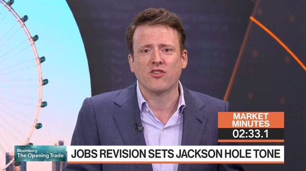 In the run-up to Powell’s Jackson Hole speech, Treasuries tumbled across the US curve, with the move led by shorter maturities. The dollar gained the most in over a month. The S&P 500 lost steam after getting close to its all-time high. Tech megacaps sold off. The swap market has cemented wagers the Federal Reserve will ease policy by about one percentage point this year.