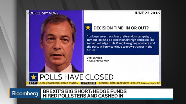 In an interview with Bloomberg, Odey said the private polling purchased from YouGov ahead of the vote was valuable, though not definitive, because there was still a high level of uncertainty about the outcome. He said his firm didn't buy an exit poll on the day. “Everyone is going to try to improve the information they have,” he said of hedge fund surveys. “That’s the arms race.” But, he said, it shouldn't be possible for some traders to pay more for better information. “The idea of public markets is that you have equality. If you don't, then one has to be worried about that.”