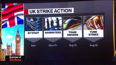 The UK faces strikes across numerous industries this month as unions look to win pay raises for workers amid a cost-of-living crisis. Lizzy Burden reports on Bloomberg Television. (Source: Bloomberg)