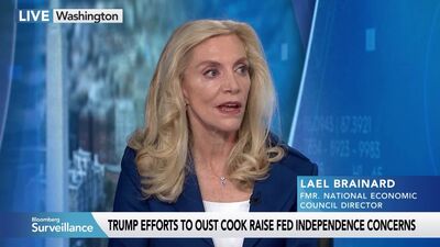 Lael Brainard, former Vice Chair of the Federal Reserve, says the independence of the Federal Reserve is under attack with President Donald Trump trying to fire Lisa Cook. Brainard says Cook deserves due process and firing Cook could hurt the economy. She speaks on "Bloomberg Surveillance." (Source: Bloomberg)