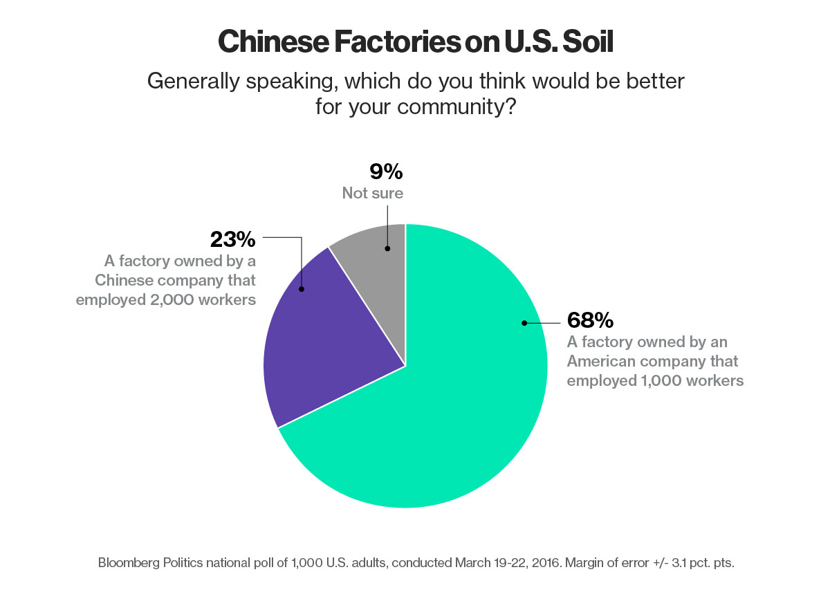 In an era of increased U.S. worry about China’s growing economic and military strength, the poll found that more than two-thirds of Americans pick fewer jobs over Chinese ownership, when asked to select between a theoretical offer for their community of a U.S.-owned factory with 1,000 jobs or a Chinese-owned plant with 2,000 workers.