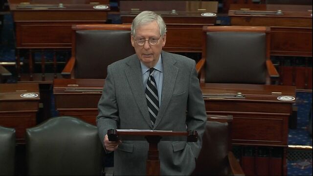 Senate Majority Leader Mitch McConnell updates progress made on a bipartisan coronavirus-relief deal. McConnell spoke Wednesday on the floor of the Senate. (Source: Bloomberg)