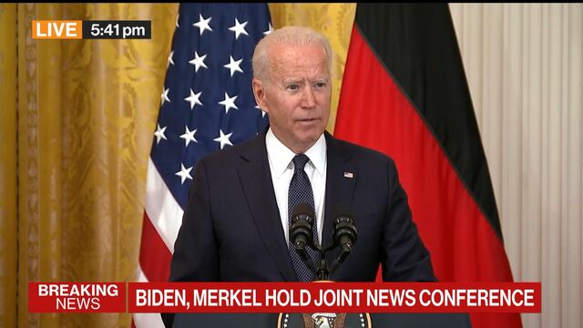 President Joe Biden says the situation in Hong Kong is deteriorating as the Chinese government is not keeping the commitment it has made to the city and comments on the state of the infrastructure package. He speaks during a joint press conference with German Chancellor Angela Merkel. (Source: Bloomberg)