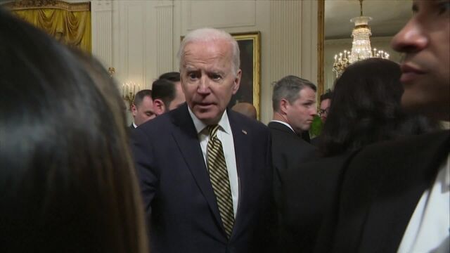 President Biden calls Russian President Vladimir Putin a "war criminal" over his country's invasion of Ukraine. Biden speaks to reporters following an event at the White House. (Source: Bloomberg)