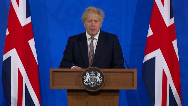 U.K. Prime Minister Boris Johnson says people in England will be able to hug close family and friends and meet indoors at pubs, restaurants and cinemas from next week, in the next phase of relaxing pandemic lockdown rules. (Source: Bloomberg)