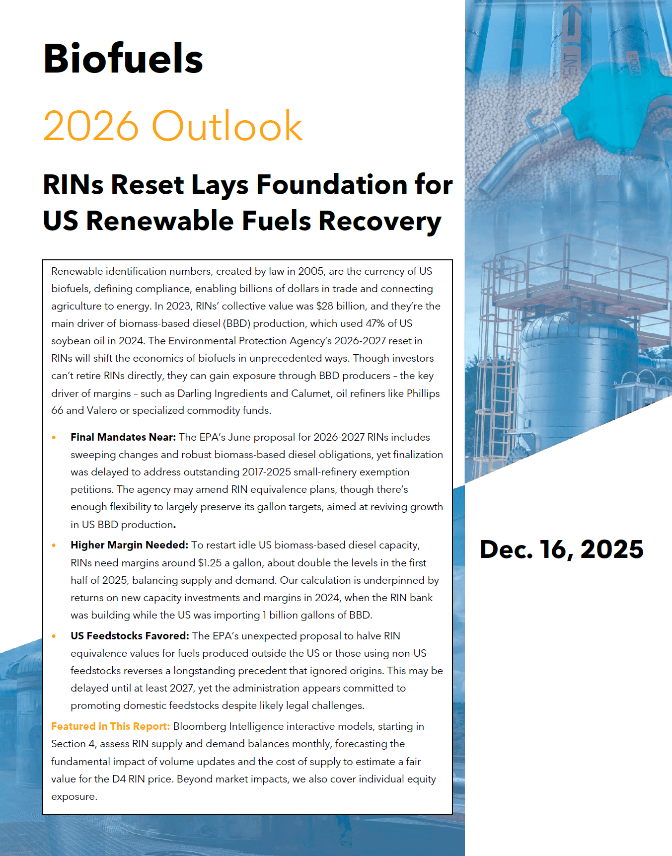Download the report now to uncover how the EPA’s 2026 reset may realign biofuel economics, domestic feedstocks, and equity exposure.