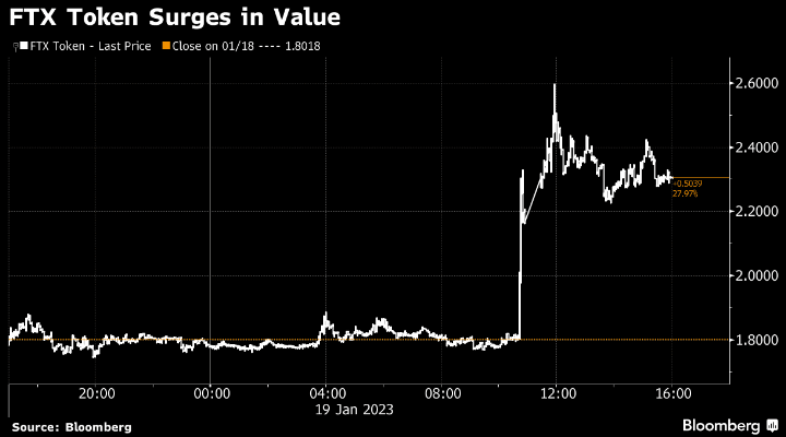FTT rose by more than 40% to trade as high as $2.60 on Thursday, according to pricing data compiled by Bloomberg. That’s still down more than 90% from its record high of more than $80, according to pricing data from CoinGecko.
