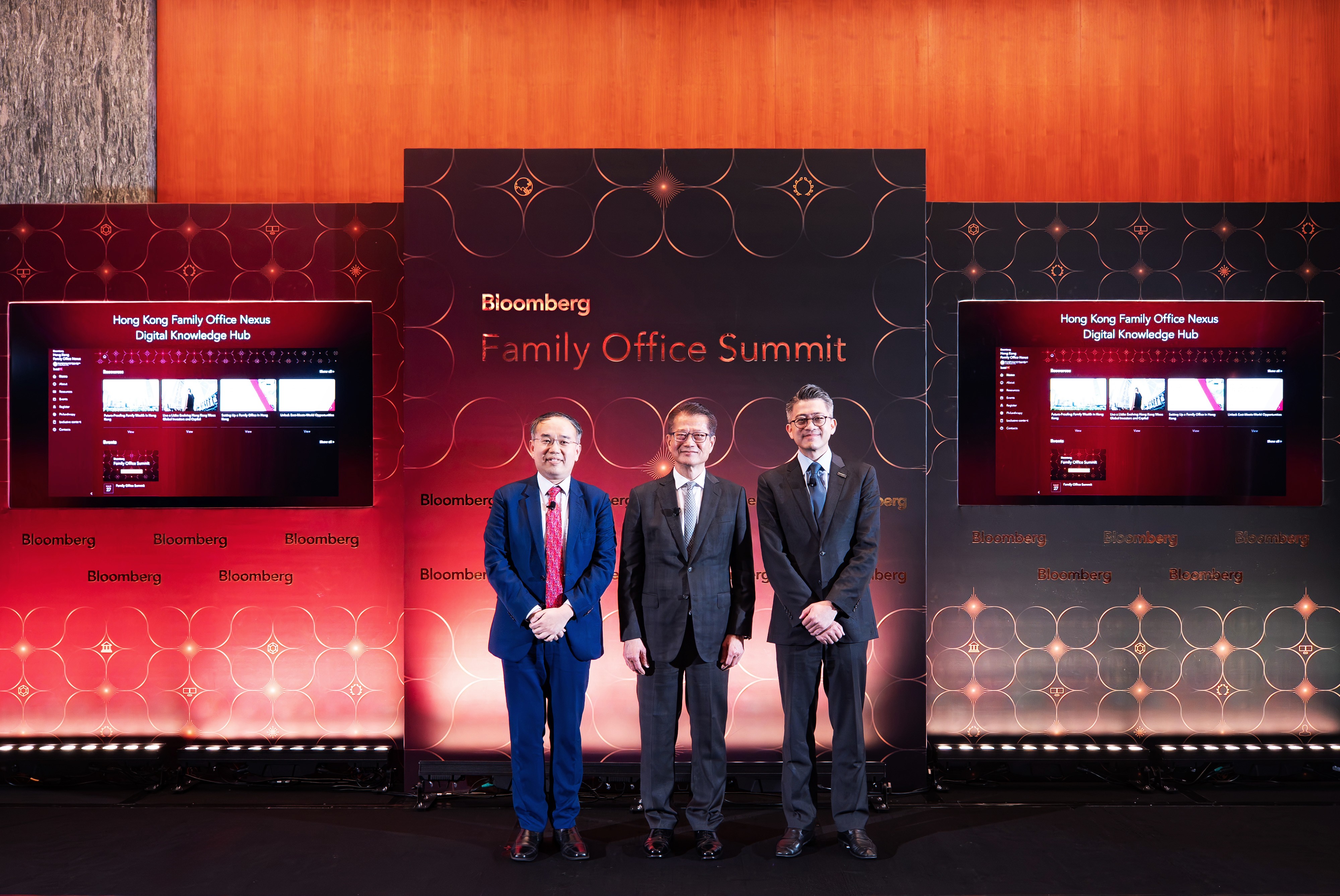 (From left to right: Secretary for Financial Services and the Treasury Christopher Hui, Financial Secretary of the Hong Kong SAR Paul Chan and Head of Asia Pacific at Bloomberg Bing Li at the inaugural Bloomberg Family Office Summit)