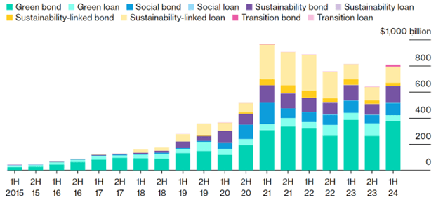 Sustainable debt is a type of borrowing, via loans and bonds, that is used for environmental or social outcomes. The sustainable debt market is $6.0 trillion in total issuance outstanding as of June 2024 based on Bloomberg data. While the scale of this market is impressive, it is also complex with distinct sustainability-related formats. The following blog provides an overview of the structure of this market and how Bloomberg supports transparency and tagging of sustainable debt instruments.