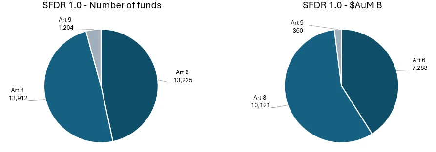 SFDR 1.0: Number of funds and AuM. Source: Bloomberg data