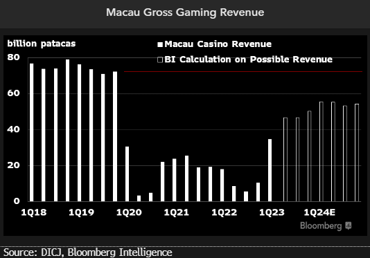 Vacation-starved tourists are traveling more within China, but their per-head spending is noticeably less. The number of domestic trips in China during the Labor Day holiday in May surged 119% over 2019, although spending per traveler is still at 90% of pre-pandemic readings. BI analyst Angela Hanlee’s scenario calls for Macau’s gaming revenue to finish 2023 at 61% of 2019’s figure, up from a previous calculation of 42%, driven by a faster mass-market recovery. Some of Macau’s growth could be powered by cost-conscious visitors eschewing pricier destinations.