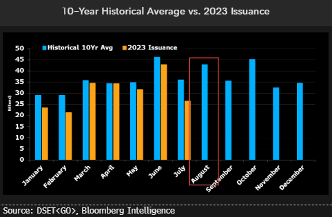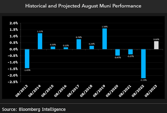 Expressed as monthly cash flows, August has an estimated $48 billion coming back to investors, up from $44 billion that matured in July, and is historically one of the heaviest month for redemptions. If investors continue to seek taxable income in lieu of accepting less yield in exempt alternatives, August performance could be kept in check.