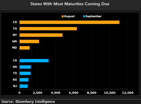 The largest August maturities include $3.2 billion of bonds for the Port Authority of New York & New Jersey, and $1.9 billion for the State of Washington.