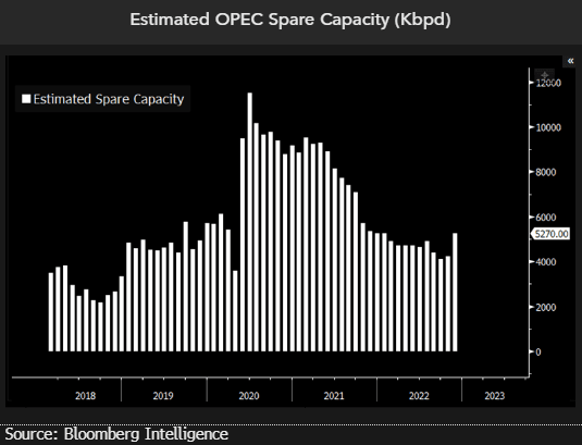 The largest shares of OPEC’s 4.8 million barrels a day of spare capacity are held by Saudi Arabia (34%), Iran (27%), the United Arab Emirates (20%) and Iraq (7%).