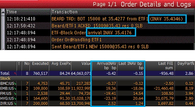 - Audit Trail: The platform provides full order handling transparency in terms of order details and transaction logs. It includes relevant ETF benchmarks such as Arrival INAV and LastFill INAV. It should also deliver interactive pre-trade and post-trade analytics with the same Arrival and LastFill INAV benchmarks captured by the order logs. Figure 3 shows samples of audit trails.